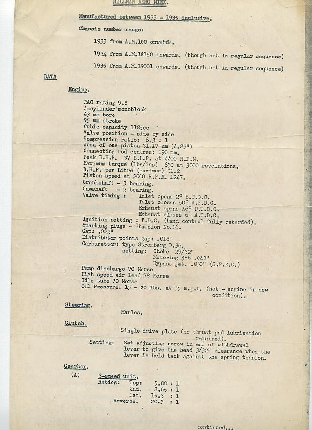 Hillman data sheet from 1967